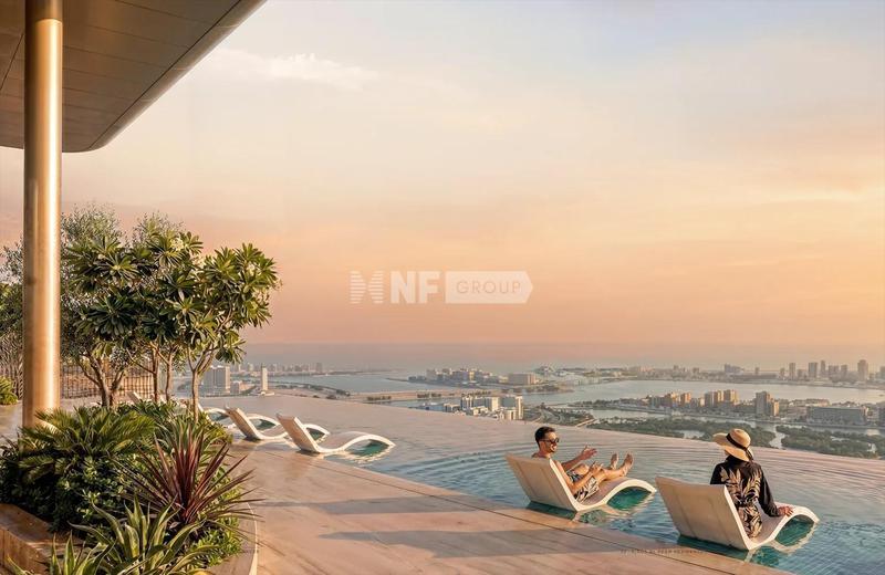 Residents enjoy an extended range of amenities, including a swimming pool with sun loungers, a children’s pool and playroom, a clubhouse, a fully equipped gym, yoga and Pilates spaces, a cinema and a game room. The upper level offers a panoramic pool and a rooftop terrace with lounge areas.