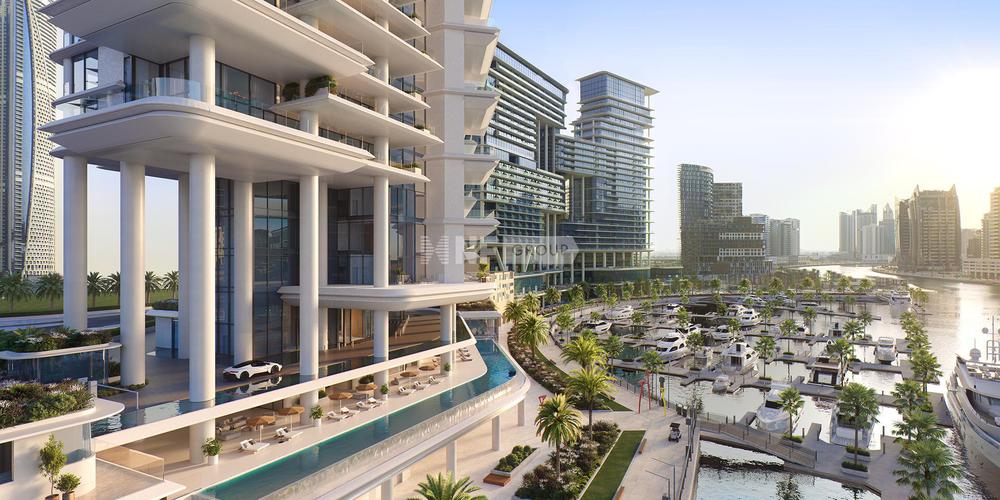 The 30-storey complex, which features a limited number of 38 furnished residences, is located on the Marasi Bay waterfront in Business Bay and offers apartments and penthouses overlooking Dubai's famous landmarks, the Burj Khalifa and Dubai Canal.